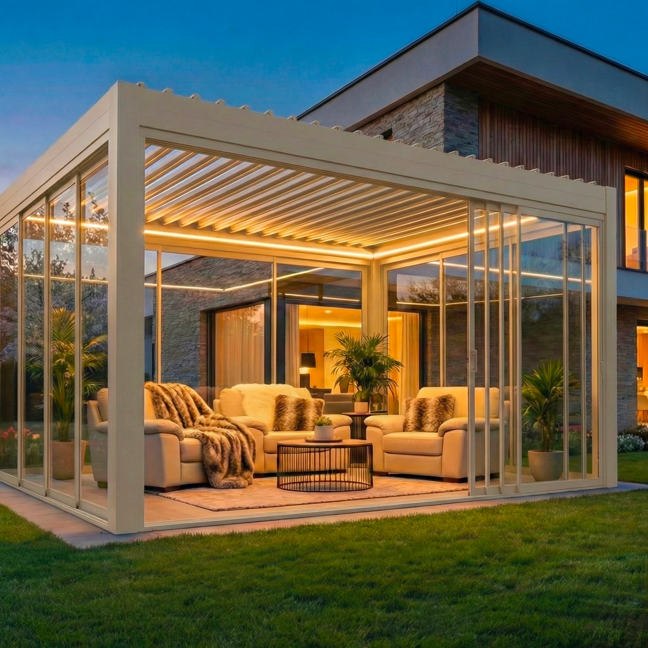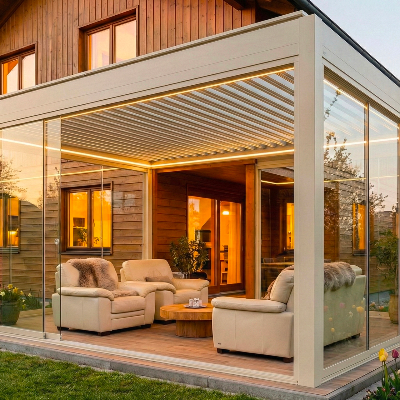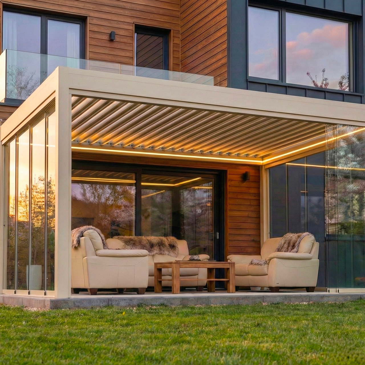 Annak ellenére, hogy klímaegységek fűtik a pergolát, érezhető, hogy közel sem azt a hőérzetet adja, mint egy beépített ingatlan, de egy pulóverben jól el lehet benne üldögélni, skandináv életérzést nyújt. Érdekes, mert Ausztráliában gyártották az első bioklimatikus pergolát, de az északi országok fejeltek rá nagyot.